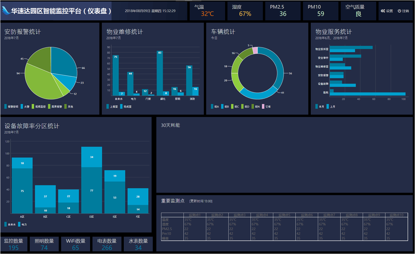 智慧園區(qū)監(jiān)控儀表盤